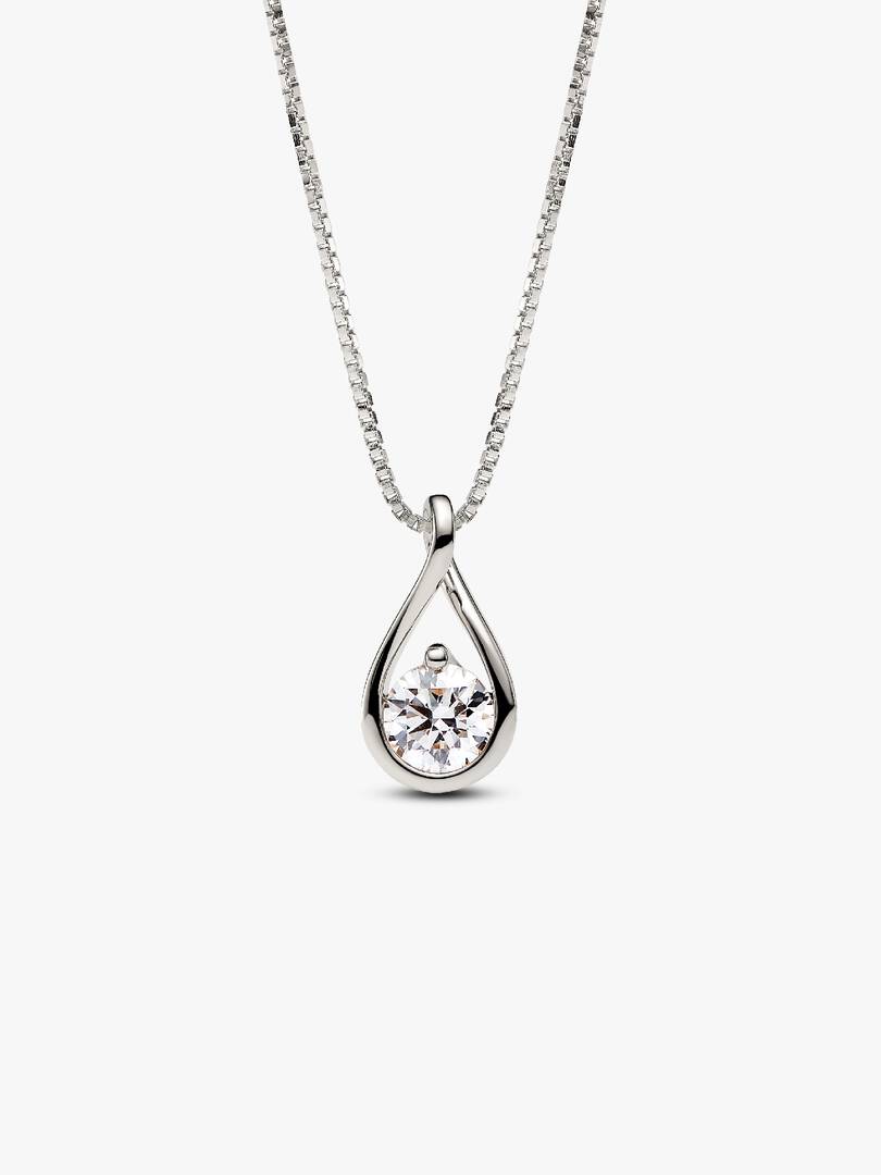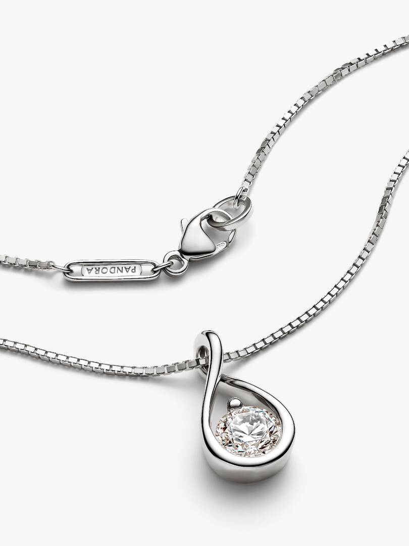 This Pandora Infinite 14k White Gold Lab-Grown Diamond Pendant Necklace is hand-set with a radiant 1.00 carat lab-grown diamond on a matching 14k white gold chain necklace. A powerful reminder of all we are, all we can b,e and the infinite possibility the future holds, this pendant features a round, excellent cut lab-grown diamond in a modern infinity setting that flows around the stone and suspends it in mid-air. An elevated piece that will shine on any neckline. Pandora Infinite lab-grown diamonds at and above 0.50 carat are certified by IGI. Each Pandora Lab-grown diamond is treated with a post-growth color enhancement called annealing.