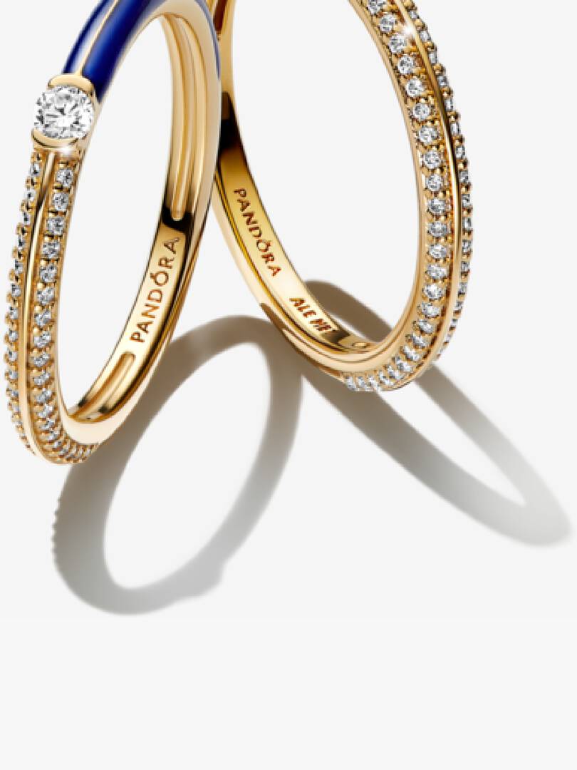 Stack your style with our Pandora ME Blue Dual Ring Set. Featuring our Pandora ME Pav?? & Blue Dual Ring and our Pandora ME Pav?? Ring, these 14k gold-plated pieces bring plenty of sparkle and a pop of colour to your ring ,stack game.
