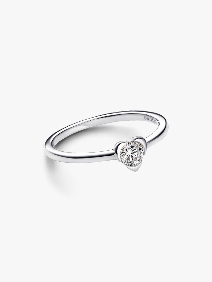 Feel the love with the Pandora Talisman Sterling Silver Lab-grown Diamond Heart Ring. This sterling silver ring features a unique setting that creates a heart motif with a 0.25 carat lab-grown diamond sparkling at its ce,nter. On the back of the stone, a heart-shaped cut-out echoes the shape of the setting and lets the light shine through to maximize sparkle. A universal symbol of love, the heart shape makes this lab-grown diamond ring the perfect gift to represent a special connection – or an affirmation of the love you have for yourself.