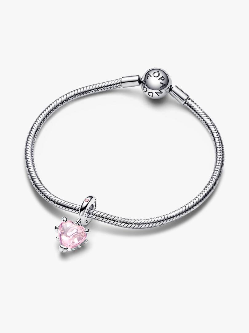 Celebrate the heart of your family with the Pink Family Tree & Heart Dangle Charm. This hand-finished dangle charm is crafted from sterling silver with a transparent pink cabochon man-made crystal shaped like a heart. On, the back of the dangle, the heart is embraced by an openwork family tree motif in sterling silver, its polished branches and leaves symbolizing an eternal love that grows like a tree and nurtures the lives we touch. The bail is engraved with the word “Family” and set with a sparkling pink cubic zirconia stone. Wear it on your Pandora bracelet or favorite charm holder to represent keeping the ones who matter most close to your heart, always.