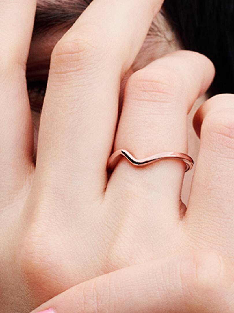 A new wave of stacking. Finished in 14k rose gold plating, our Polished Wave Ring curves to resemble the movement of a wave, with a smooth polished surface. Stack several 14k rose gold-plated rings together or combine wi,th the pav?? version in different metal tones for a contemporary look you??ll love for years to come.