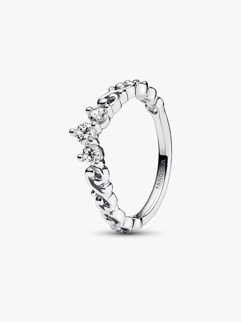 Add a touch of royalty to your looks with the Regal Swirl Tiara Ring. Crafted in sterling silver, this aristocratic piece features a tiara decorated with three sparkling stones and swirling filigree. Crown your hand with, this majestic ring and treat yourself like a real queen.