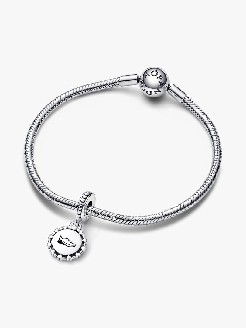 Add a personal touch to your run with this engravable dangle sneaker charm. Customizable, stylish, and made to move mile after mile.