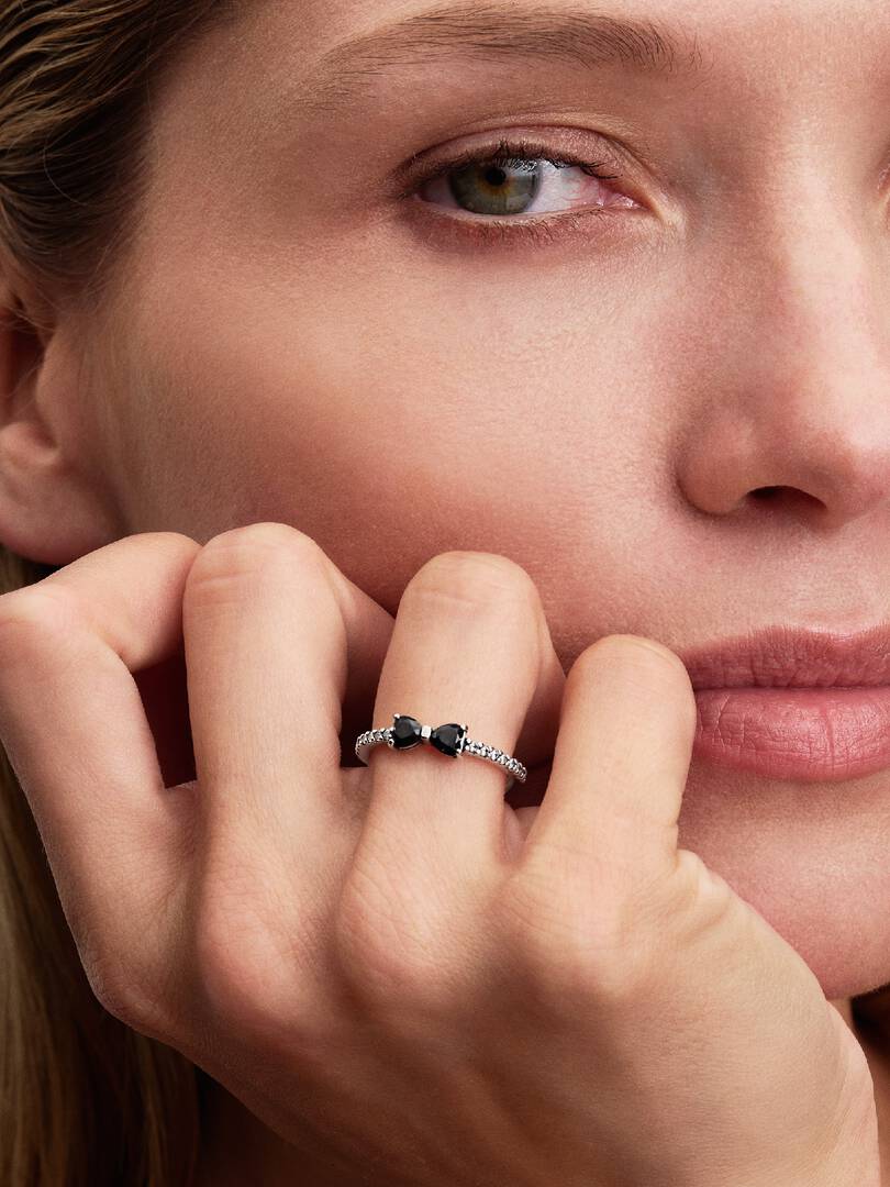 Put a bow on your manicure with this elegant ring featuring a duo of black crystals. A timeless symbol of love and connection that adds a touch of elegance to any outfit.
