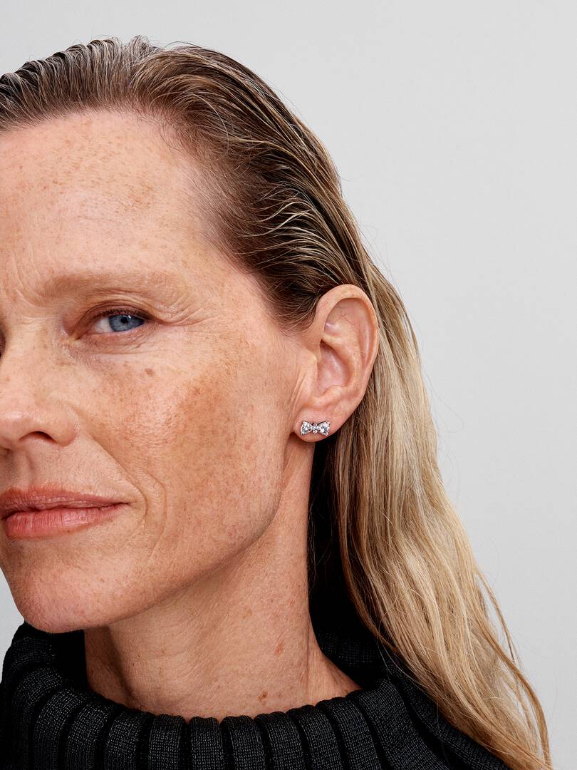 Add a light-filled touch to your look with the Sparkling Bow Stud Earrings. Featuring faceted stones that form a bow, this versatile style is crafted in sterling silver and shines with a cool glow. Perfect for wearing wi,th casual outfits as well as on special occasions, the bow is a symbolic motif that always adds something extra to the everyday day. Style together with other bow pieces for a maximalist look or wear solo for a subtle take.