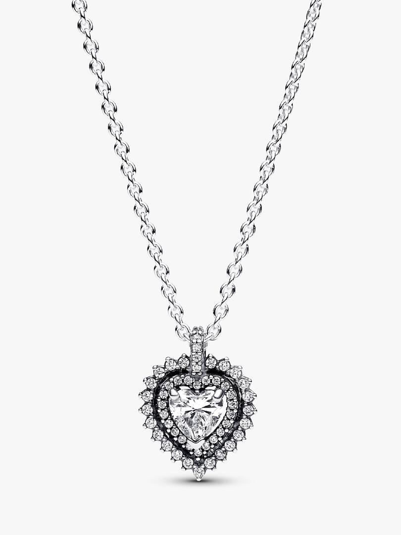 Sparkling Heart Halo Pendant Necklace Sterling silver