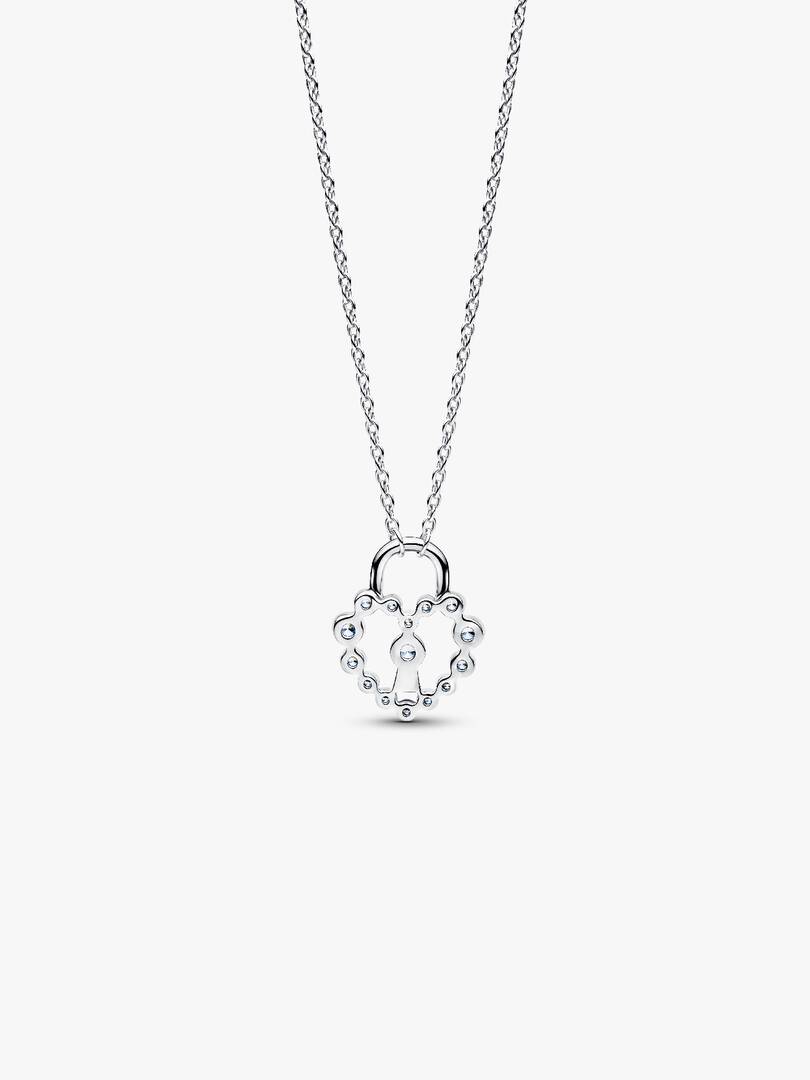 Sparkling Heart Padlock Pendant Necklace Sterling silver
