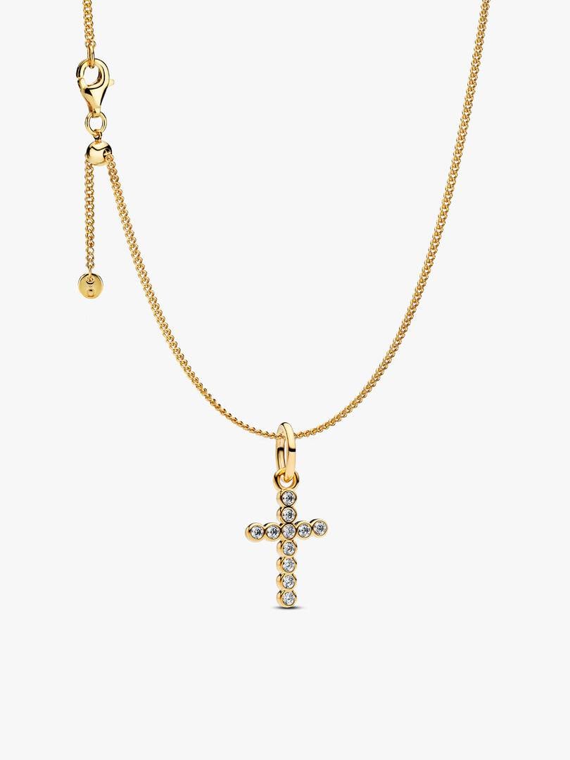Let your faith shine with this symbolic 14k gold-plated set. An adjustable curb chain pairs perfectly with a sparkling cross charm ?? a timeless blend of meaning and everyday elegance.