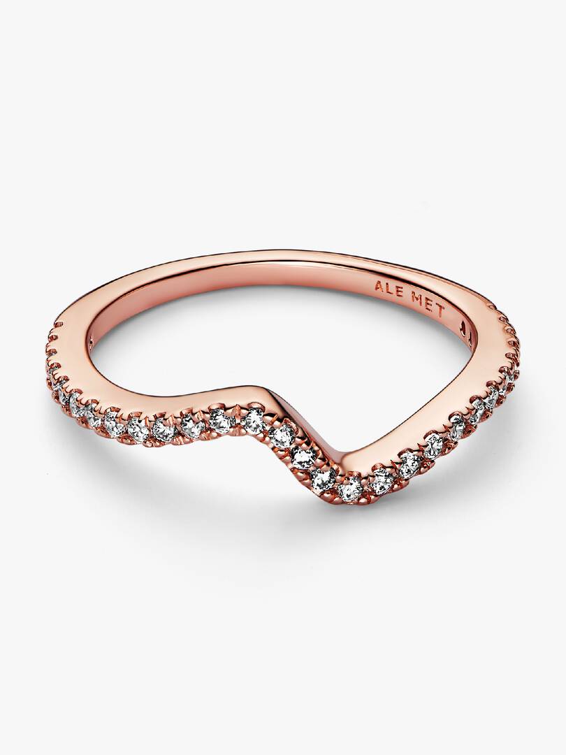 Hand-finished in 14k rose gold plating, our Sparkling Wave Ring curves to resemble the movement of a wave and features a row of round brilliant-cut clear cubic zirconia along its front. Wear it solo or stacked for a cont,emporary look you??ll love for years to come.