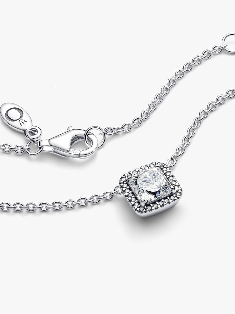 Square Sparkle Halo Necklace Sterling silver