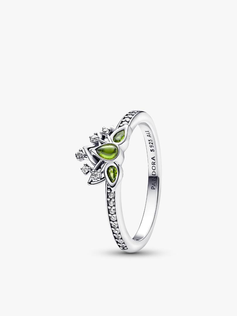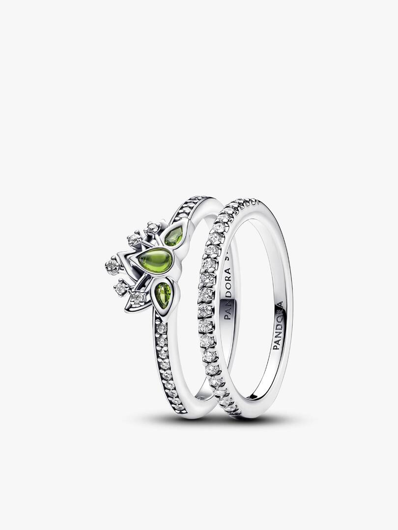 Channel the magic of Disney??s Tiana with the Tiana Sparkling Ring Set. The Sparkling Band Ring offers delicate shine with a row of clear cubic zirconia on a sterling silver band, perfect for adding a touch of sparkle eve,ry day. The Disney Princess Tiana Ring features three pear-shaped light green crystals and sparkling cubic zirconia, creating a lily pad shape with openwork leaves that resemble Tiana??s tiara. Wear this enchanting set as a reminder to embrace your inner princess and shine with confidence.