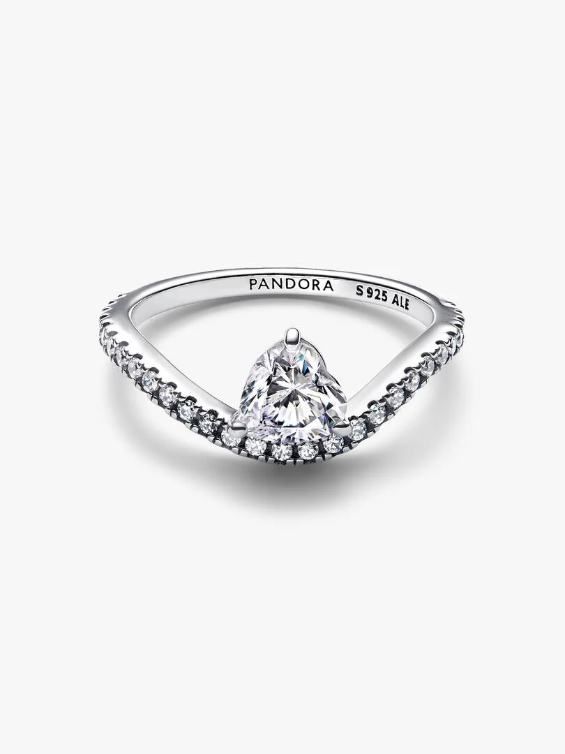 A wavy band combines with a heart-shaped stone in this unique ring design. Crafted from sterling silver, it showcases a prong-set heart-cut cubic zirconia offset from a sparkling pav?? band. A contemporary piece with an e,legant, flowing design, it will pair perfectly with your favorite sterling silver jewelry.